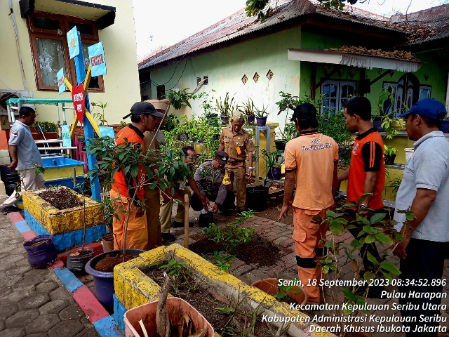 Jakarta, Dekannews - Senin (18/09/2023), Aipda Sidik, Bhabinkamtibmas Pulau Harapan dari Polres Kepulauan Seribu, bersama dengan Pemerintah Daerah Pulau Harapan, menggelar kegiatan penanaman puluhan pohon di pulau tersebut. Langkah ini diambil untuk mengurangi tingkat polusi udara dan mendukung upaya pelestarian lingkungan.